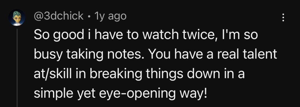 But the real personal breakthrough was that now, when I got feedback from professors and industry people, I knew exactly what they were getting at and how to fix it.
